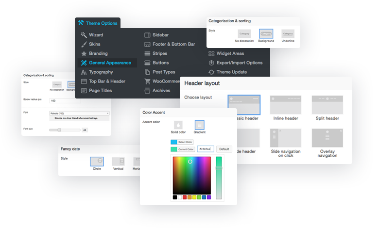 Even a beginner can easily handle The7’s wast array of appearance customisation options thanks to the Design Wizard feature.